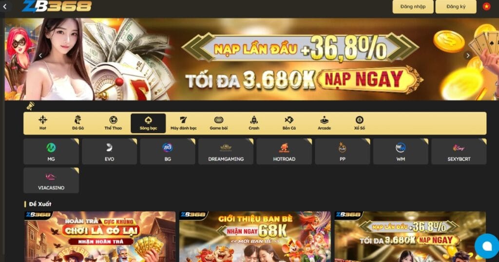 - Giao Diện Đa Dạng: Hợp tác với các nhà cung cấp game hàng đầu thế giới như Evolution, SA Gaming, Asia Gaming…, ZB368 mang đến hàng chục sảnh chơi với nhiều phong cách và giới hạn cược khác nhau, phù hợp với mọi đối tượng người chơi.